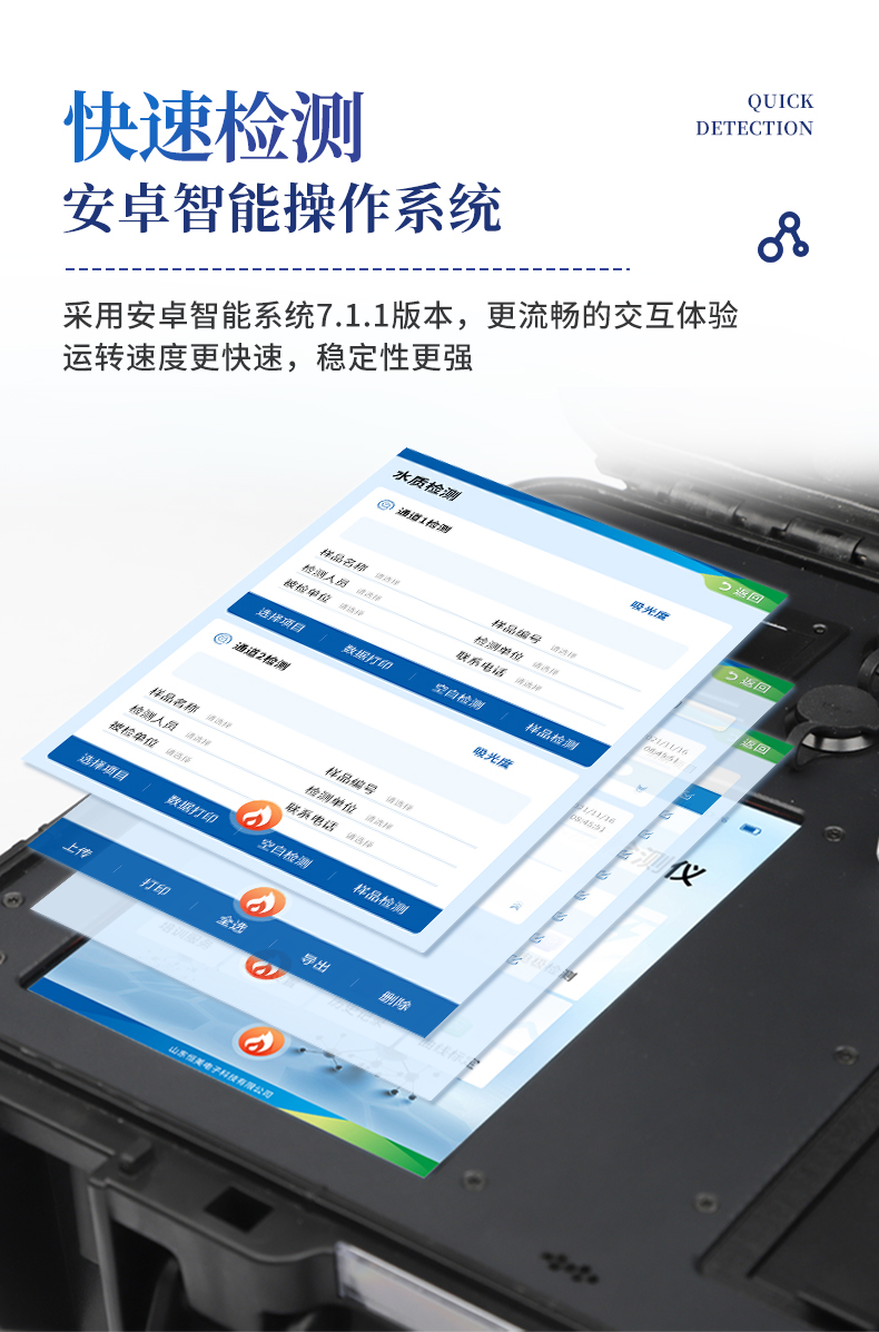 YT-B04型便攜式COD氨氮總磷總氮檢測儀采用高強度PVC工程塑料手提箱設計,消解檢測一體式設計,其中消解模塊具備雙溫區功能,檢測部分同時具備360°旋轉比色管檢測和比色皿檢測,安卓智能操作系統,8英寸高清液晶觸摸屏,光纖檢測技術,進口光源,內置大容量鋰電池,便攜多參數水質檢測儀具有性能穩定、測量準確、測定范圍廣、功能強大、操作簡單等特點。