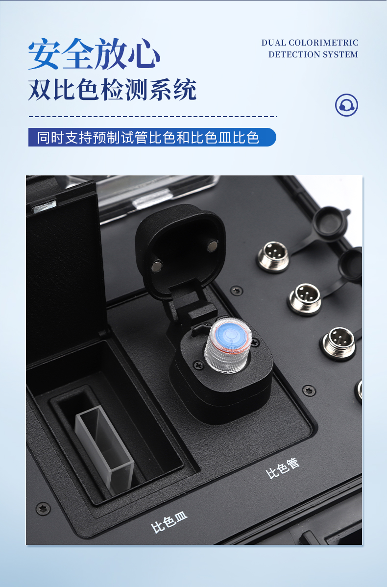 2、雙比色檢測系統,同時支持預制試管比色和比色皿比色;