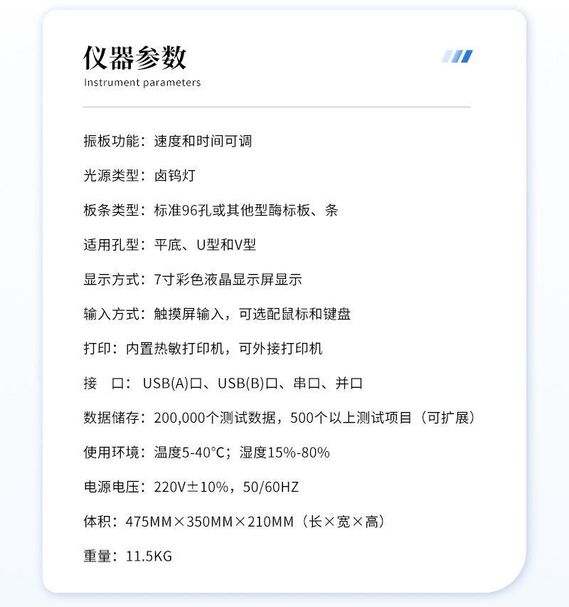 *讀板速度:單波長≤3秒/96孔,雙波長≤6秒/96孔