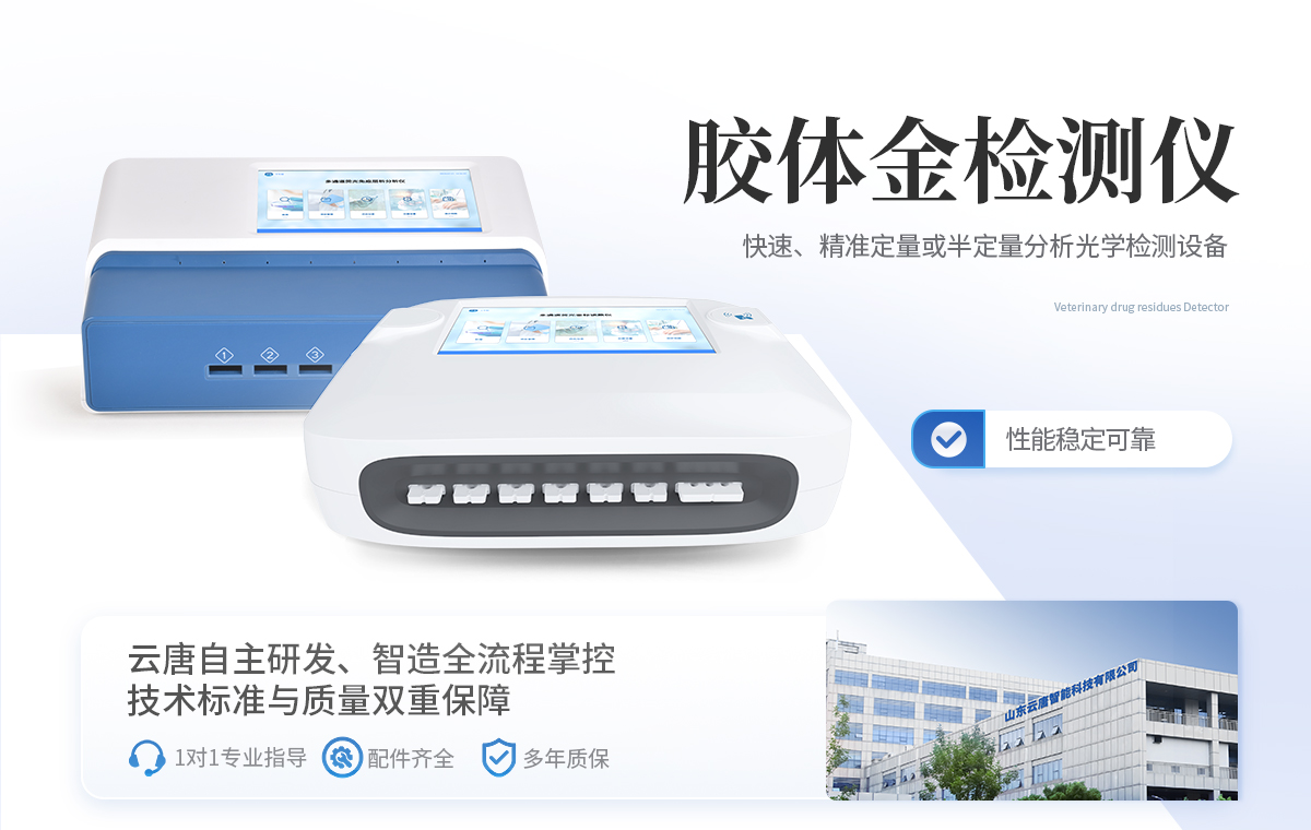 | 1、食品安全: 致病微生物、農獸藥殘留、生物毒素等快速篩查。 | 2、畜牧獸醫: 動物疫病診斷、動物源性安全指標檢測。 | 3、環境監測: 水質、土壤特定污染物篩查。 | 4、科研與生物安全: 免疫層析實驗定量分析、生物因子檢測。 | 5、其他領域: 所有使用膠體金免疫層析試紙條的場景。 |
