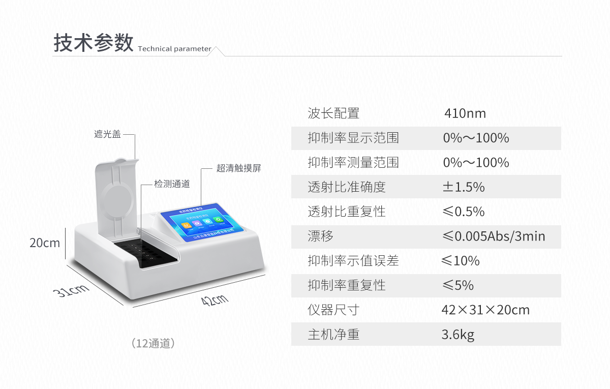 檢測標準:依據國家標準方法(GB/T5009.199-2003)以及世界衛生組織WHO、世界糧農組織FAO殘留農藥檢測標準、世界環境保護局EPA參照攝入量等要求來設計。采用酶抑制率比色法對水果、蔬菜等農林產品中有機磷和氨基甲酸酯類農藥含量進行快速準確的檢測。