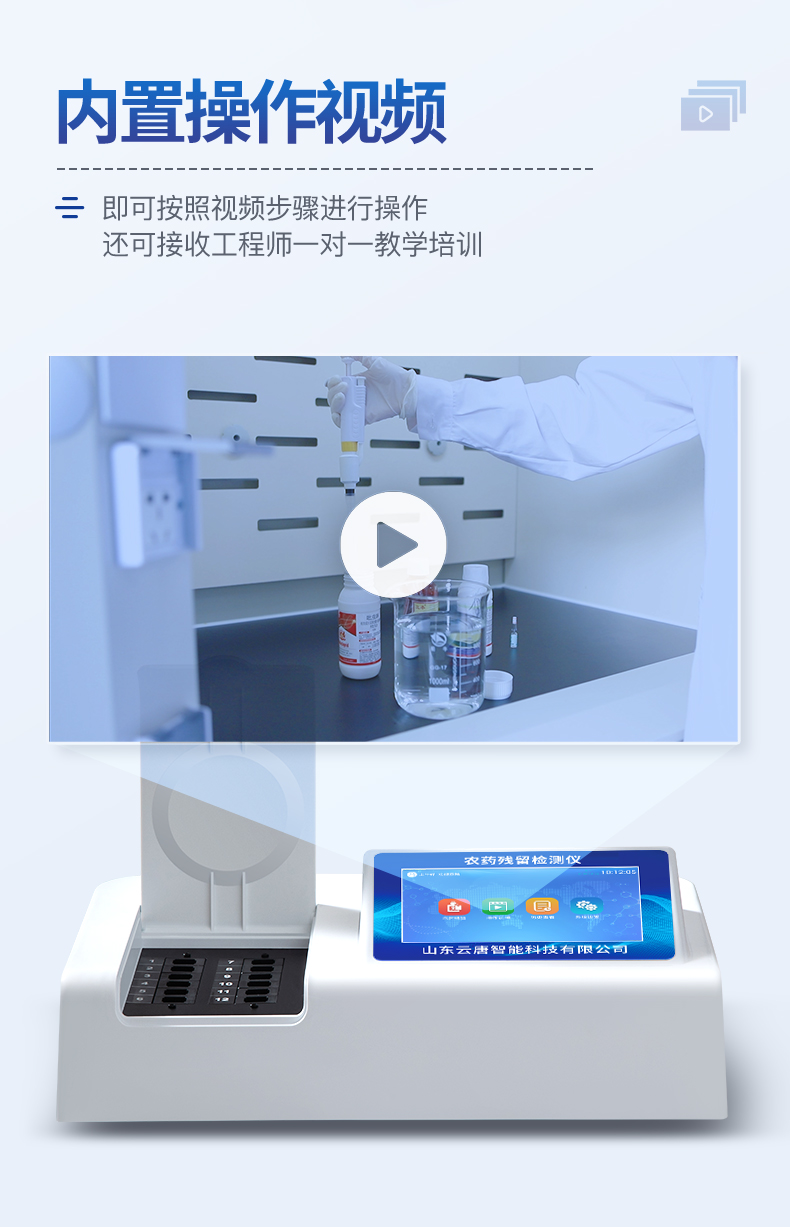 | 乙酰膽堿酯酶和丁酰膽堿酯酶試劑均可以使用,符合國家標(biāo)準(zhǔn)和農(nóng)業(yè)部標(biāo)準(zhǔn)的要求。 | 自動(dòng)判斷樣品是否合格,檢測結(jié)果更加直觀。 | 儀器具有100多種蔬菜名稱菜單庫,分類管理,并可按需添加或刪除蔬菜名,編輯蔬菜名稱,可直接打印出蔬菜名稱。 | 檢測通道:12個(gè)檢測通道,可以同時(shí)測試多個(gè)樣品,循環(huán)檢測,即放即檢,每個(gè)樣品由程序控制分別獨(dú)立工作,不會(huì)互相干擾。 | 智能操作系統(tǒng),采用更加人性化操作,主控采用多核處理器,主頻1.88Ghz,運(yùn)轉(zhuǎn)速度更快速,穩(wěn)定性更強(qiáng)。 | 顯示方式:7英寸高靈敏真彩觸摸屏顯示,人性化中文操作界面,讀數(shù)直觀、簡單。 | 打印機(jī)采用串口5v打印,可選擇手動(dòng)打印或者自動(dòng)打印,三分鐘出打印結(jié)果,打印格式為檢測人姓名、吸光度差值、檢測時(shí)間、檢測機(jī)構(gòu)、樣品名稱及結(jié)果判定。 | 光源采用進(jìn)口超高亮發(fā)光二極管,具有低功耗、高精度、穩(wěn)定性強(qiáng)、光源可控可以關(guān)掉不使用的光源,響應(yīng)速度快等優(yōu)點(diǎn)。 | 智能恒流穩(wěn)壓,光強(qiáng)自動(dòng)校準(zhǔn),長時(shí)間連續(xù)工作光源無溫漂現(xiàn)象。 | 儀器具有GPRS遠(yuǎn)傳功能,可插手機(jī)卡實(shí)現(xiàn)數(shù)據(jù)遠(yuǎn)傳平臺(tái),wifi聯(lián)網(wǎng)功能,可將數(shù)據(jù)快速上傳電腦,進(jìn)行數(shù)據(jù)管理與統(tǒng)計(jì)。 | 采用USB2.0接口設(shè)計(jì),方便數(shù)據(jù)的存貯和移動(dòng),并可隨時(shí)與計(jì)算機(jī)直接相連,并且可用計(jì)算機(jī)控制儀器。實(shí)現(xiàn)數(shù)據(jù)查詢、瀏覽、分析、統(tǒng)計(jì)、打印等。 | 智能化程度高,儀器具有自檢功能:具有開機(jī)自檢和調(diào)零功能,具有自動(dòng)檢測重復(fù)性功能 | 儀器具有自身保護(hù)功能,可設(shè)置用戶名及密碼,防止非工作人員操作等。 | 采用DC12v直流供電,安全系統(tǒng)更高,并且配備6A鋰電池充電器。 | 儀器具有重新校準(zhǔn)、鎖定、恢復(fù)出廠設(shè)置功能。 |