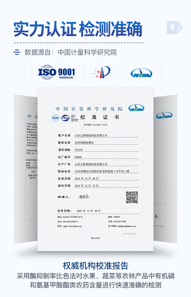 型號:發布時間:2026-01-07 一、產品簡介:山東云唐智能科技有限公司生產的農藥殘留檢測儀廣泛應用于主要用于蔬菜、水果、茶葉、糧食、農副產品等食品中農藥殘留的快速檢測,依據國標GB/T5009.199-2003進行檢測,適用于果蔬茶生產基地以及農貿批發銷售市場現場檢測,餐館、學校、食堂、家庭果蔬加工前的安全速測等。二、主要技術參數: 咨詢熱線:133 7109 8225   在線咨詢   技術支持
