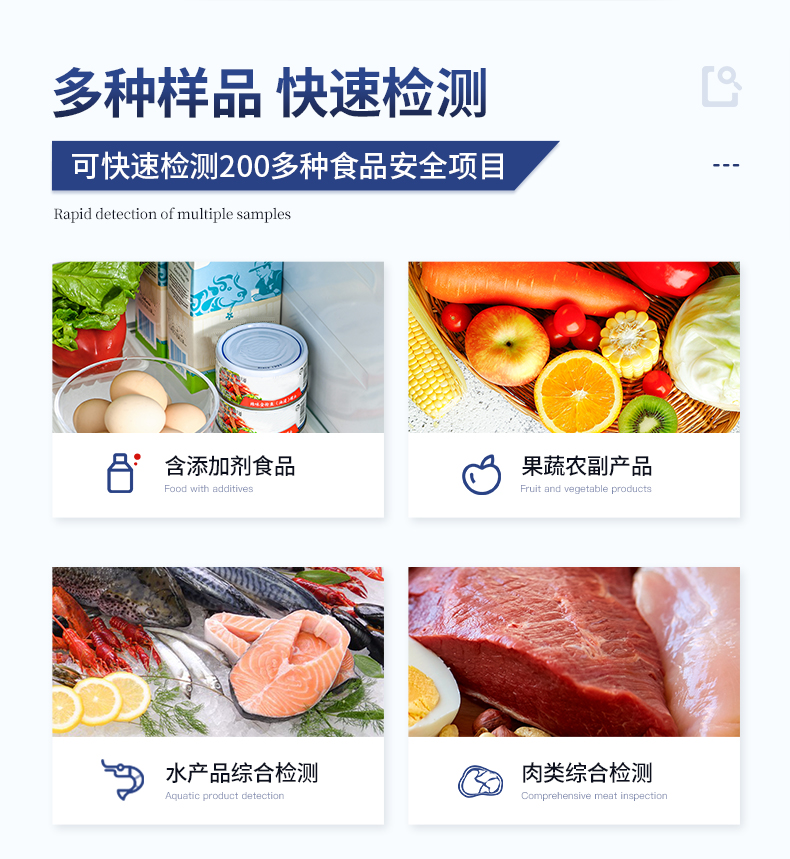 5、具有多個(gè)食品安全檢測項(xiàng)目,開放平臺(tái),可以增減檢測項(xiàng)目。