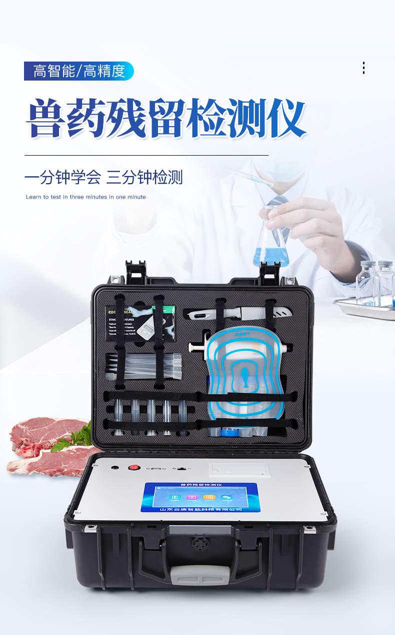 該獸藥殘留檢測儀適用于豬、雞、鴨、羊、牛、牛奶等畜禽肉產品中獸藥殘留,包括抗生素類殘留、瘦肉精激素類殘留和水產品有毒有害物質的現場快速篩查定及性定量檢測。該多功能獸藥殘留檢測儀為集成化肉品安全快速檢測分析設備,可廣泛應用于畜牧養殖場、屠宰場、食品肉產品深加工企業、食藥監局、檢驗檢疫部門、衛生部門、高教院校、科研院所、農業部門等單位使用。