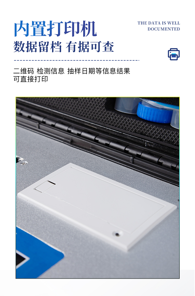 | ★1、安卓智能操作系統,采用更加**UI交互界面,儀器具有wifi聯網上傳、4G聯網傳輸、GPRS無線遠傳、網線連接功能,快速批量上傳數據。 | 2、智能化程度高,儀器具有自檢功能:具有開機自檢和調零功能,具有自動檢測重復性功能。 | ★3、新一代高速熱敏打印機,檢測完成可自動打印檢測報告和二維碼。 | ★4、儀器帶有監管平臺,數據可局域網和互聯網數據上傳,檢測結果直接傳至食品安全監管平臺。進行區域食品安全監管及大數據分析處理與數據統計,檢測區域食品安全長短期動態,達到食品安全問題預估、預警 | 5、一體化主機,包含食品安全檢測模塊、多通道農藥殘留檢測模塊、膠體金免疫層析檢測模塊。 | 6、一體化便攜式快檢設備,滿足現場及流動檢測使用需求,能夠在同一軟件下實現所有檢測項目的檢測,并可通過同一窗口直觀顯示檢測結果。 | 7、膠體金模塊檢測方式:軌道式自動傳輸掃描,檢測完成后自動退出檢測卡。 | ★8、儀器內置攝像頭拍照,可顯示金標卡實時圖像,系統自動分析并呈現出CT曲線圖,CT線自動識別,無需手動調整。 | 9、儀器具有品類多種類樣品菜單庫,可靈活選擇檢測樣品,不同的檢測通道可同時檢測不同的樣品項目。 | ★10、儀器內置操作教學視頻,點擊視頻模塊即可快速查看,方便用戶使用。 | 11、樣品處理簡單省力,整體操作快速、安全、便捷。 | ★12、儀器可配置身份識別功能,通過密碼或刷證件開機,防止非工作人員操作等。 | 13、高靈敏度,高檢測精度,高重復性精度,掃描式高精度光學傳感器。 | 14、內置強大的數據庫,可在儀器上直接選擇樣品名稱、檢測指標、送檢單位等信息,也可在儀器上直接編輯錄入樣品名稱、檢測指標、送檢單位等信息并保存進樣品數據庫。 | 15、儀器具有重新校準、鎖定、恢復出廠設置功能。 | 16、結果判定線可修改,對照值標定值可保存,斷電不丟失數據。 | 17、兼容市場上所有的膠體金卡,使用耗材不受限制,極大增強用戶使用體驗。 |
