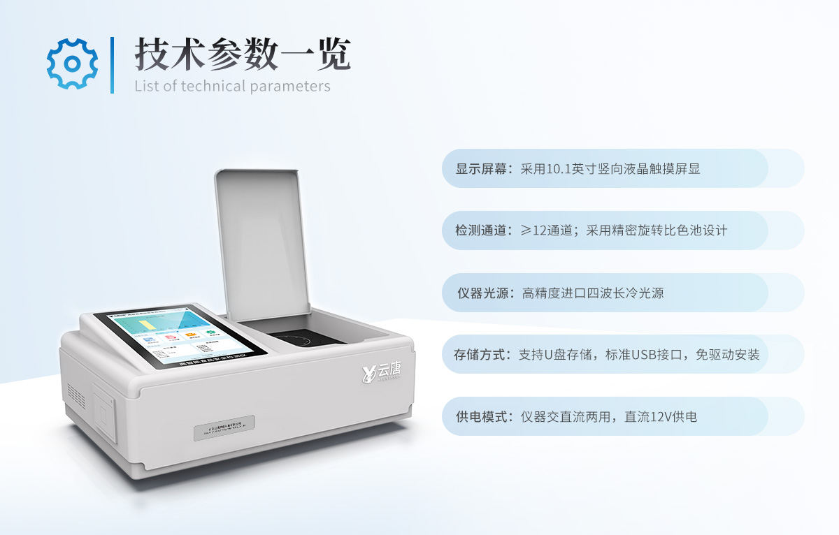 | 儀器采用臺式一體化系統(tǒng)檢測技術(shù),將分光光度模塊、新型農(nóng)殘檢測模塊、數(shù)字化管理模塊、無線通訊模塊高度集成于一體,支持檢測200種食品安全檢測項目,同時預(yù)留升級檢測方法。 | 儀器檢測模塊標(biāo)準(zhǔn)化、智能化,可隨意自由組合。檢測箱體內(nèi)置多個標(biāo)準(zhǔn)檢測單元,檢測模塊可以調(diào)整配置。 | 儀器采用全新安卓智能系統(tǒng),主控芯片采用 ARM Cortex-A7,RK3288/4核處理器,10.1寸高清液晶觸摸豎屏,更加**的UI交互界面,運轉(zhuǎn)快捷;儀器配備無線通信模塊: 4G(APN)通訊模塊、Wifi模塊,藍(lán)牙傳輸,同時具有雙USB接口以及RJ45接口能以多種方式實現(xiàn)數(shù)據(jù)保存和數(shù)據(jù)傳輸功能。 | 創(chuàng)新檢測模式: | ★檢測通道:≥12通道;采用精密旋轉(zhuǎn)比色池設(shè)計,使用同芯片同光源校準(zhǔn)精度,解決不同光源之間的誤差值。1-12通道間誤差0.1%。(***:**202022821055.2) | ★儀器具有自動識別比色皿檢測功能,即:將樣品比色皿放入儀器后,點擊樣品檢測,儀器自動識別比色皿進(jìn)行通道檢測。 | 進(jìn)口高精光源: | 高精度進(jìn)口四波長冷光源,通道配置 410、520、590、630nm 波長光源,一個光源芯片驅(qū)動一個光源,誤差極小,每臺設(shè)備單獨**校準(zhǔn)光源,**比對,同時參照四種不同波段光源全方位覆蓋市面上99%的農(nóng)殘食品項目檢測。 | 智能化操作系統(tǒng): | 便捷操作系統(tǒng):設(shè)備檢測時可在同一檢測界面自動對應(yīng)相關(guān)檢測通道一次性選擇1-12個樣品名稱,無須退出界面,節(jié)省操作時間。 | 數(shù)據(jù)集成系統(tǒng):設(shè)備首頁自動統(tǒng)計檢測數(shù)據(jù)包含:周檢測數(shù)據(jù)、月檢測數(shù)據(jù),全部檢測總數(shù)量,均包含檢測總數(shù),合格數(shù),不合格數(shù),以及相關(guān)柱形分析圖,對各項檢測數(shù)據(jù)清晰掌握,無需電腦查詢,更加快捷直觀。 | 項目預(yù)設(shè)系統(tǒng):支持添加單個及多個相同或不相同的任務(wù)預(yù)設(shè),一鍵快速調(diào)取,每一個任務(wù)分別可以設(shè)置不同的樣品、批次、編號、來源、備注、抽樣信息、檢測信息、受檢信息、復(fù)核信息等更多信息。無縫鏈接平臺和APP實時查看下發(fā)任務(wù)。 | 數(shù)據(jù)監(jiān)管系統(tǒng):同步對接監(jiān)管平臺,數(shù)據(jù)可局域網(wǎng)和互聯(lián)網(wǎng)數(shù)據(jù)上傳,檢測結(jié)果可選擇直接傳至食品安全監(jiān)管平臺。集成OSS輸出存儲服務(wù)、區(qū)分設(shè)備定向管理應(yīng)用,進(jìn)行區(qū)域食品安全監(jiān)管及大數(shù)據(jù)分析處理與數(shù)據(jù)統(tǒng)計,檢測區(qū)域食品安全長短期動態(tài),達(dá)到食品安全問題預(yù)估、預(yù)警。 | 自定義打印系統(tǒng):內(nèi)置全新打印系統(tǒng),新創(chuàng)自定義打印方式,可按需靈活設(shè)置開啟或關(guān)閉:產(chǎn)品合格證(國家農(nóng)業(yè)部標(biāo)準(zhǔn)要求),二維碼,抽樣信息、檢測信息,受檢信息、復(fù)核信息、抽樣日期、檢測日期等信息的打印。 | 系統(tǒng)遠(yuǎn)程更新功能:可定向分客戶分儀器更新系統(tǒng),按照不同客戶后期實際需求添加項目,無需機器返廠,即可遠(yuǎn)程實時升級全新系統(tǒng),節(jié)省時間成本及避免運輸造成設(shè)備損壞。 | 儀器主機采用一體化防水、抗壓、防撞擊、防腐蝕箱體設(shè)計,同時配備交直流供電,可連接車載電源,可選配大容量充電鋰電池,滿足現(xiàn)場野外檢測需求。 | 安全證書,放心保障:儀器具有中國計量科學(xué)研究院校準(zhǔn)證書,權(quán)威認(rèn)證。 |