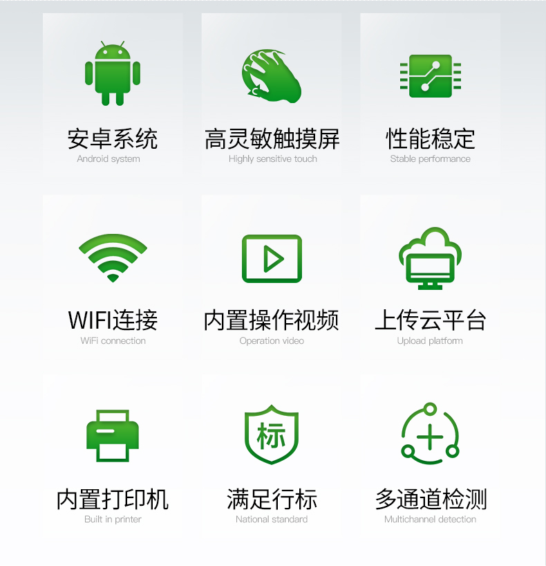 14、高靈敏7寸真彩觸摸屏,采用更加**和人性化操作,高清晰高交互顯示,大程度降低傳統儀器的繁瑣操作和失誤,并取得多項《軟件著作權》。