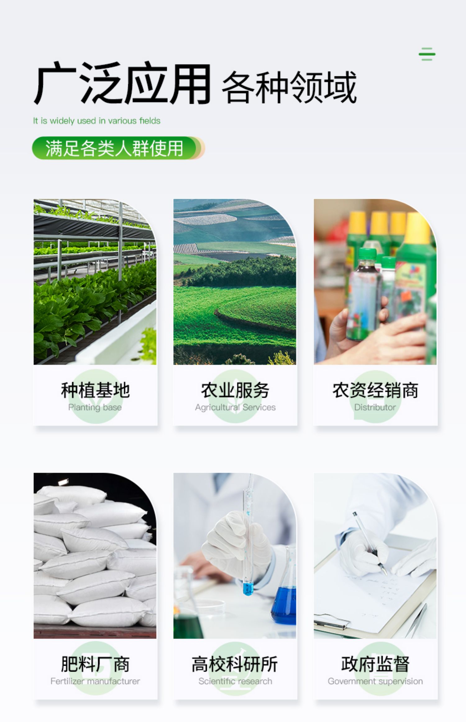 可對土壤、肥料、作物、蔬菜、水果、水質、食品等樣品中的砷、鉛、鎘、鉻、汞、鐵、鋁、鋅、錳、銅等進行快速聯合測定。