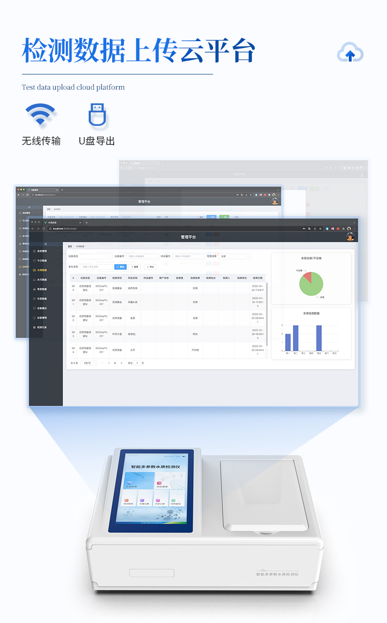 云平臺(tái):儀器帶有監(jiān)管平臺(tái),連接有線/無線網(wǎng)絡(luò),檢測(cè)結(jié)果直接傳輸至環(huán)境安全監(jiān)管平臺(tái)。